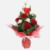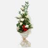 Состав: 3 гвоздики, 3 хризантемы, 3 розы, зелень, флористические материалы