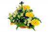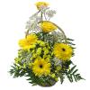 Состав: 3 желтых герберы, 2 желтых розы, 2 ветки желтой кустовой хризантемы, 2 ветки гипсофилы, 7 веток папоротника, корзина, оазис.