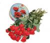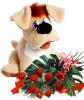 Состав: плюшевая игрушка собачка, красные розы (3 шт) в упаковке с зеленью.