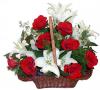 Состав: красные розы (9 шт), белые лилии, , аспарагус умбеллатус, корзина, оазис.