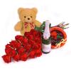 Состав: Розы (9 шт), мишка, датское печенье, бутылка шампанского