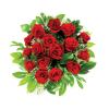 Состав: роза розовая или белая 11 шт., аспарагус умбилат 1шт., гипсофила 1шт., папоротник 3шт., аспарагус плюмозус 3шт., эвкалипт 4шт., лента (бант) 1шт.